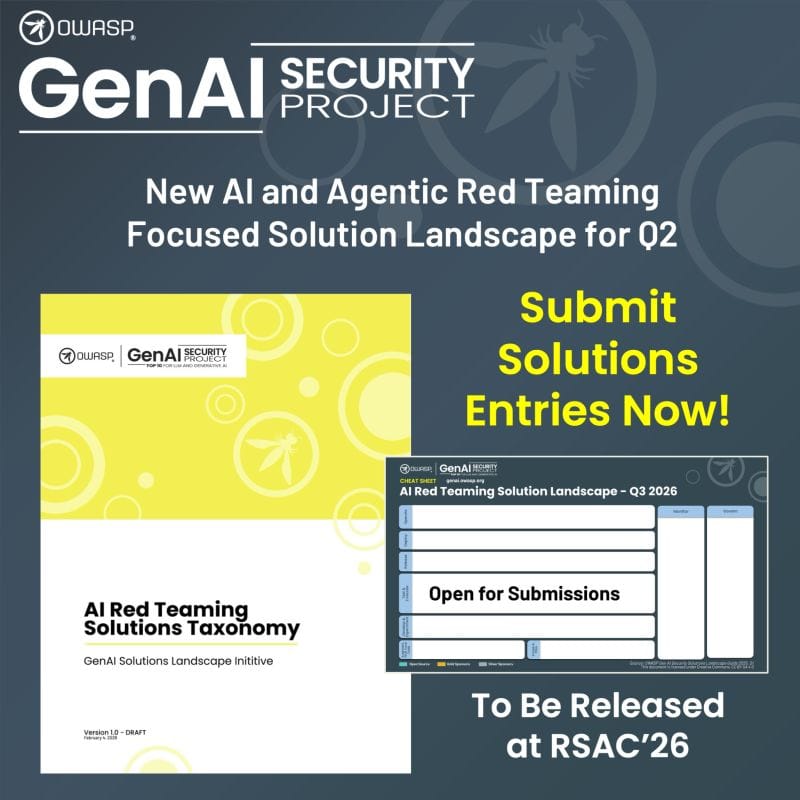 The OWASP GenAI Security Project is launching a new Red Teaming Solutions Landscape Guide cataloging solutions that support AI and agentic red, blue, and purple teaming.