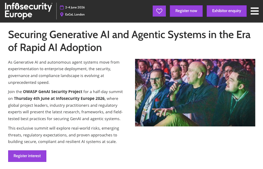 Agentic AI Security Summit, LondonAround 400 and people gathered in London on December 10 the for the projects first Agentic AI Security Summit in Europe. Where the GenAI Security Project’s Agentic Security Initiative team released the OWASP Top 10 for Agentic Applications. |